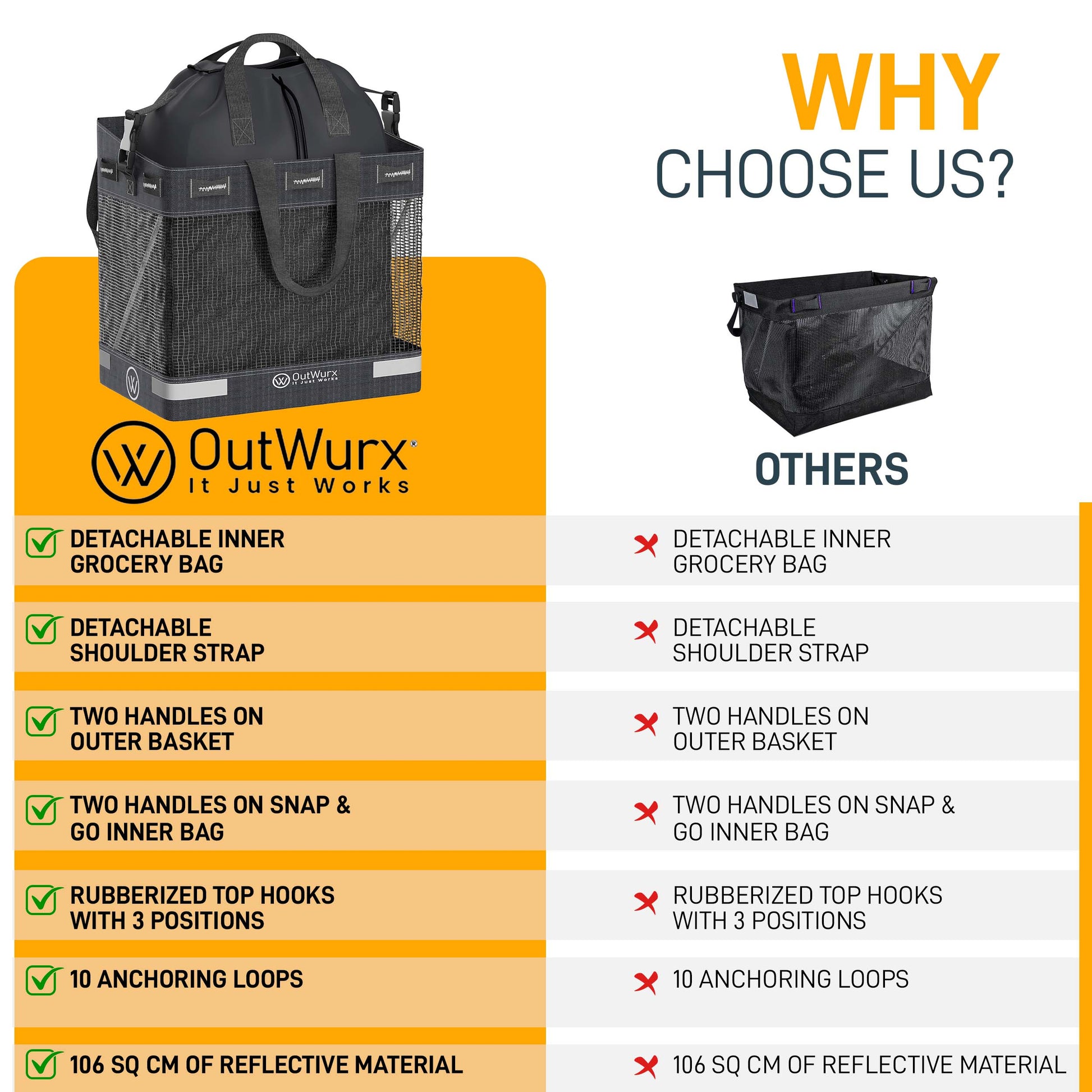 - SHOULDER STRAP INCLUDED - Experience unparalleled ease while transporting your groceries with the included shoulder strap in our bicycle panniers, allowing for comfortable carrying on and off the bike.